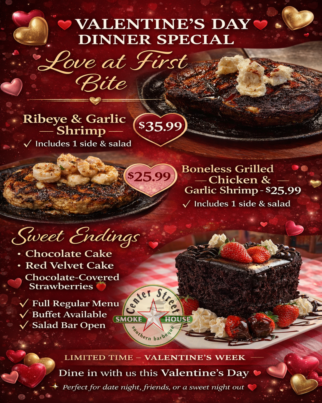 Call us to set up any size event, whether it be here at Center Street or at your place. Any event, any size! We can even get you tents, tables, chairs and other items for outdoors weddings.